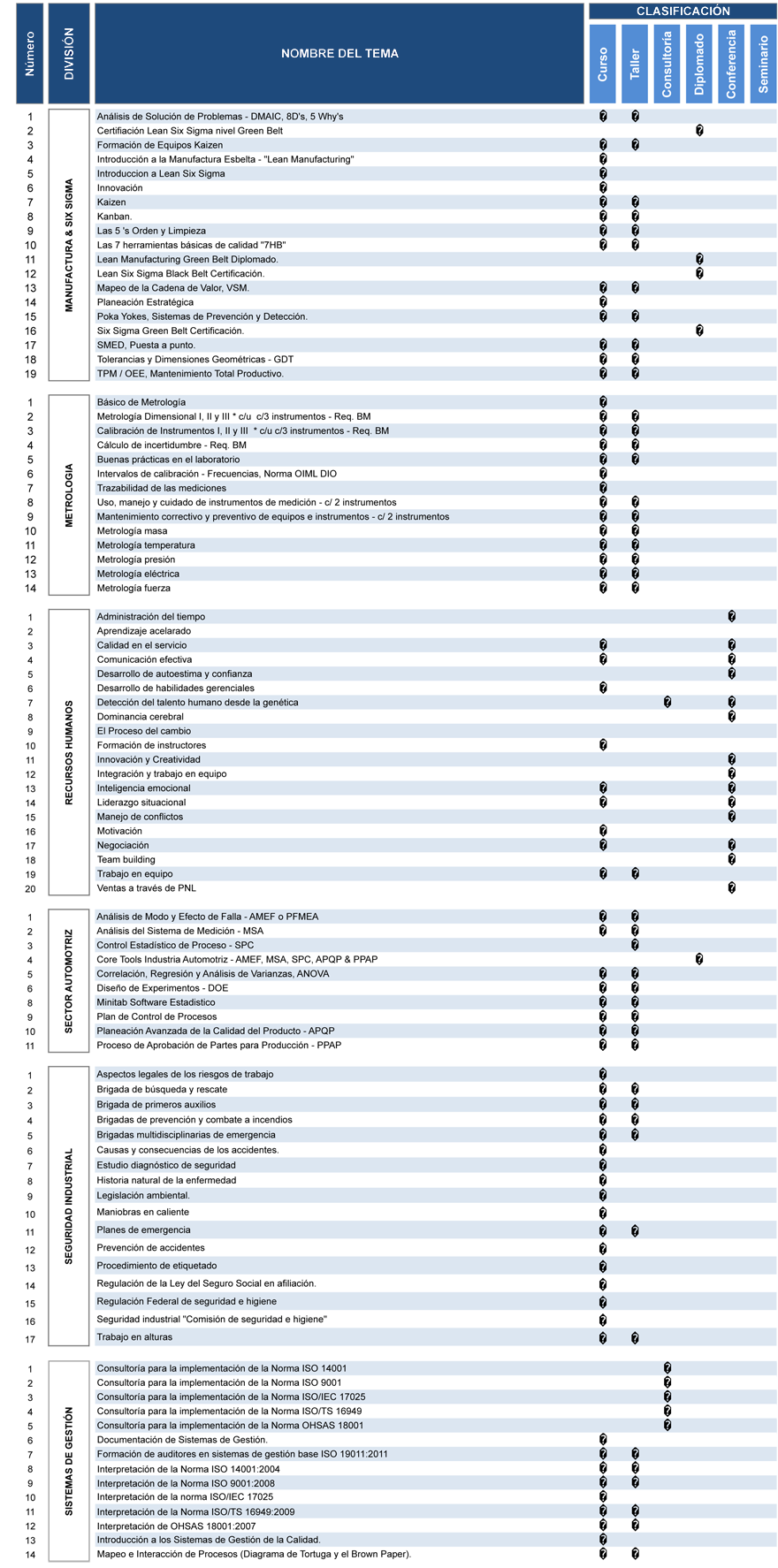 Si el curso que está buscando no está listado, contáctenos y con gusto le atenderemos.